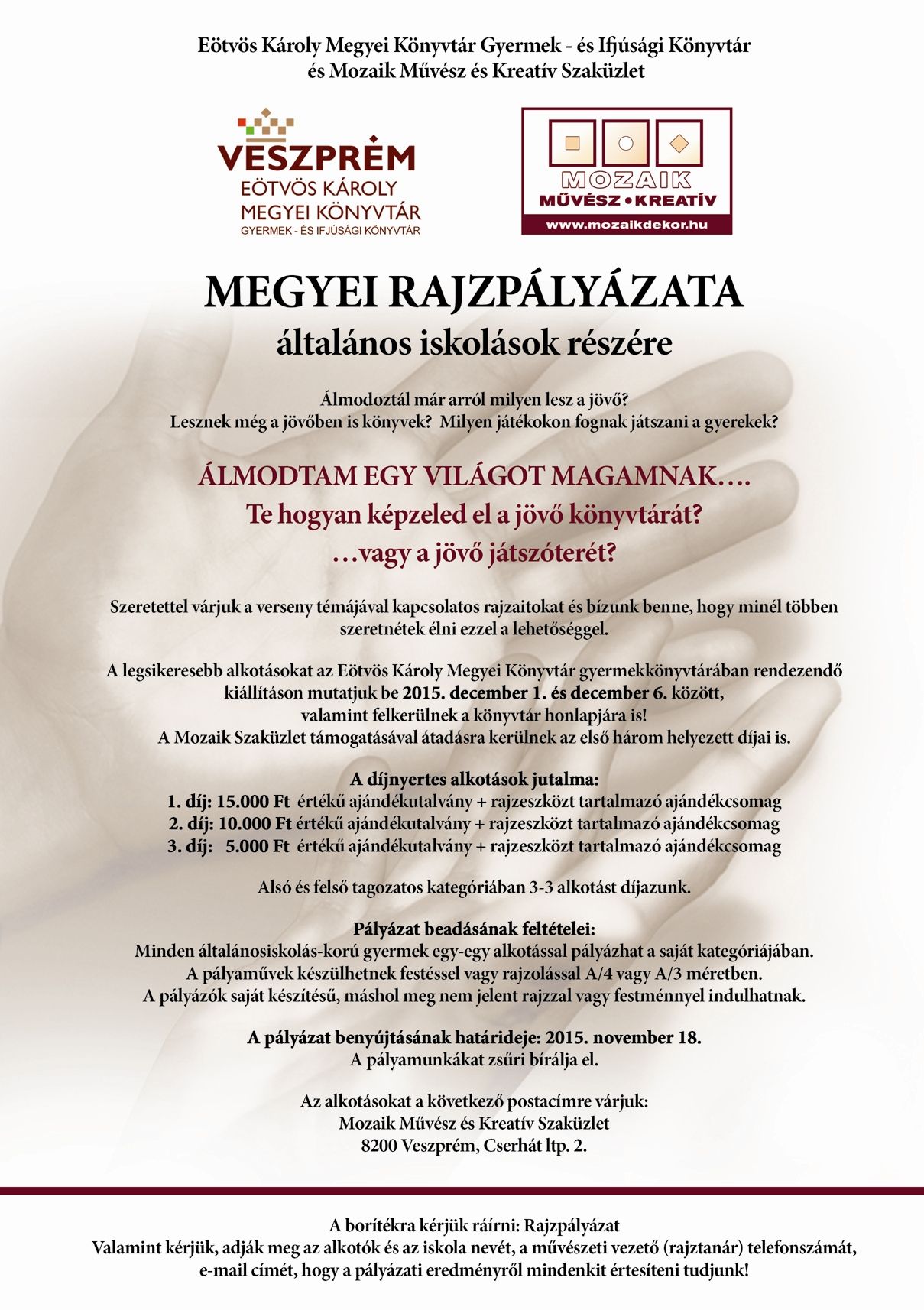Az Eötvös Károly Megyei Könyvtár Gyermek- és Ifjúsági Könyvtára és a Mozaik Művész és Kreatív Szaküzlet Veszprém megyei általános iskolások részére rajzpályázatot hirdet.