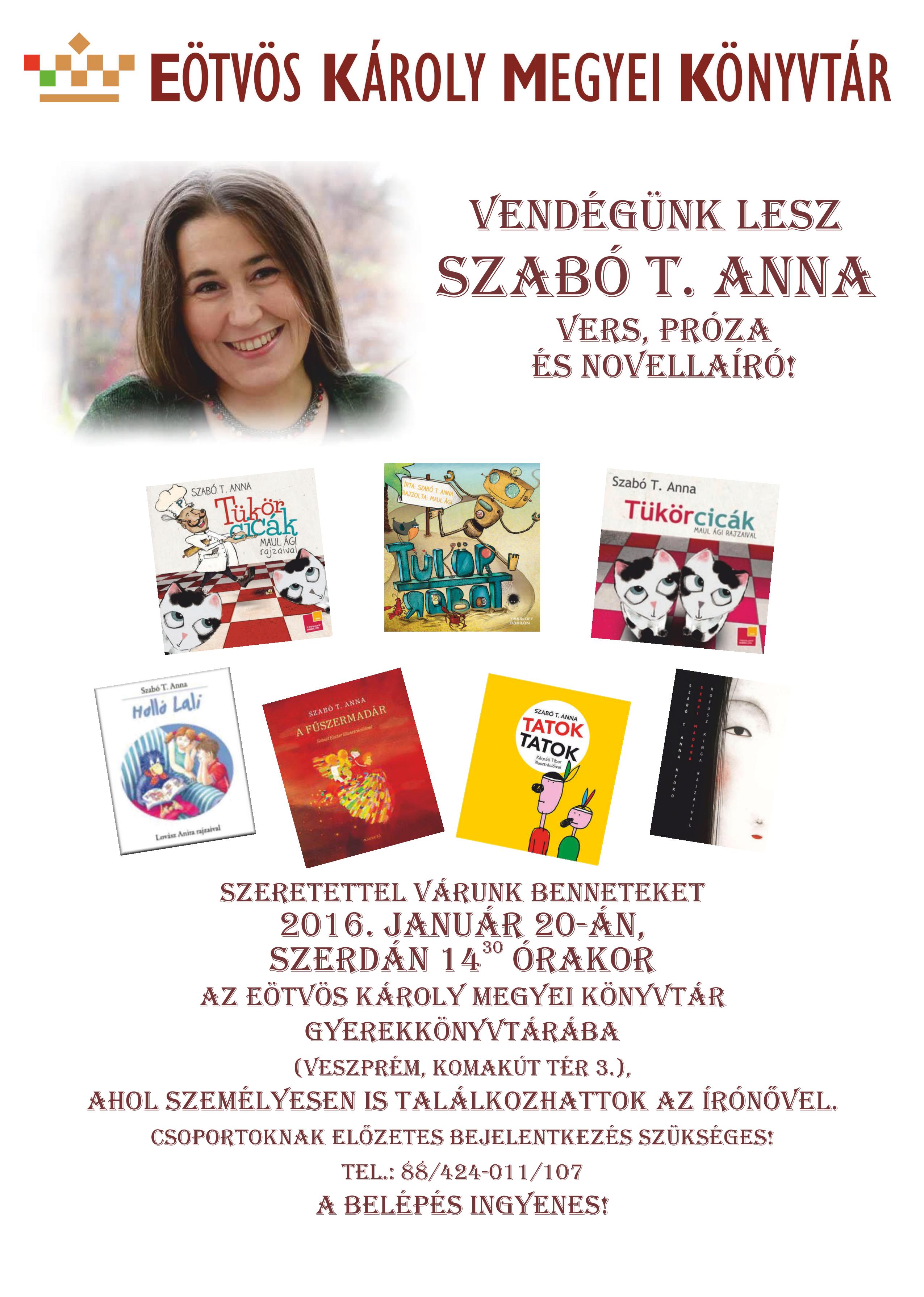 Vendégünk lesz Szabó T. Anna vers, próza és novellaíró