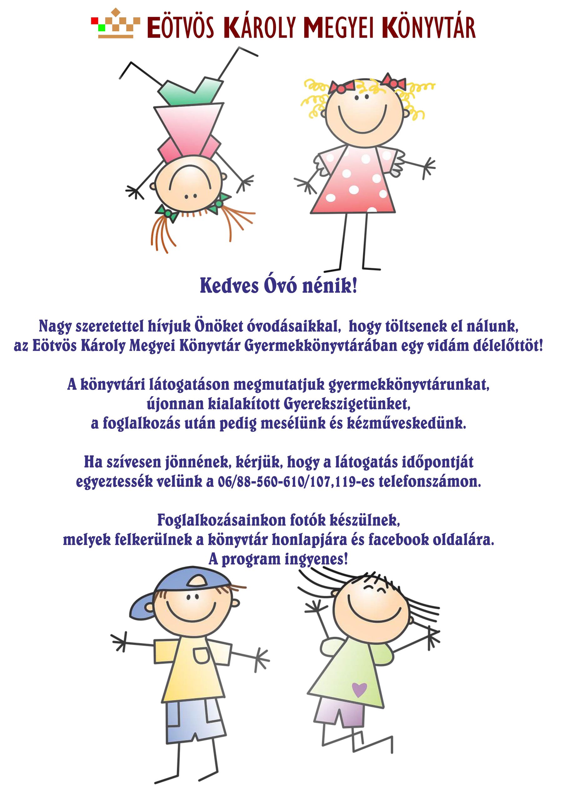 Nagy szeretettel hívjuk Önöket óvodásaikkal, hogy töltsenek el nálunk, az Eötvös Károly Megyei Könyvtár Gyermekkönyvtárában egy vidám délelőttöt!