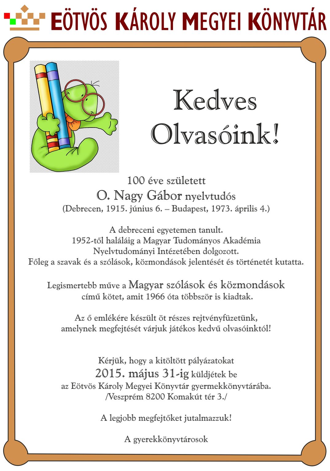 Kérjük, hogy a kitöltött pályázatokat 2015. május 31-ig küldjétek be az Eötvös Károly Megyei Könyvtár gyermekkönyvtárába. /Veszprém 8200 Komakút tér 3./