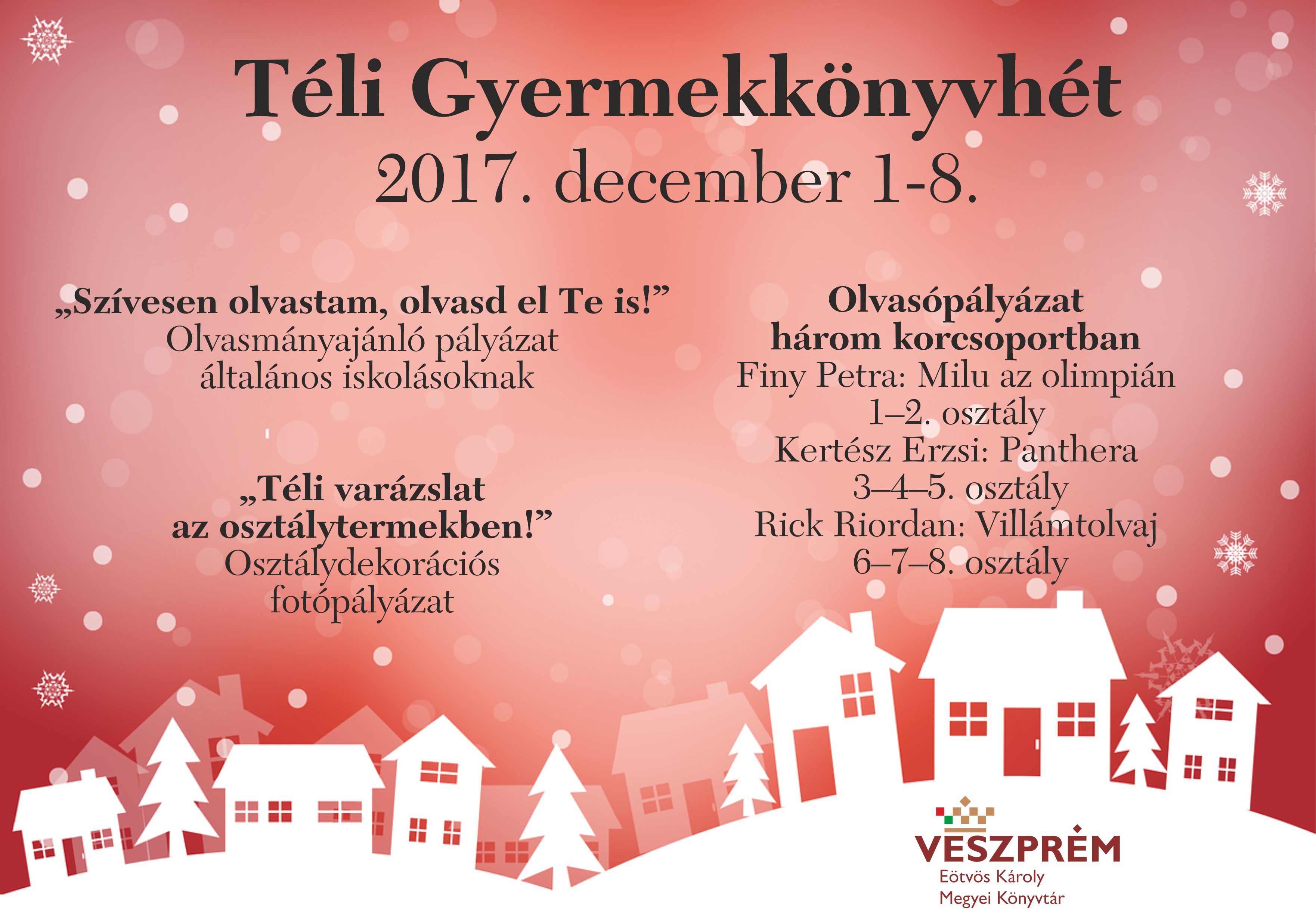 Farsangi könyvek ajánlója Téli könyvajánló ... Karácsonyi játszóház ... Ünnepi nyitvatartás ... Téli gyermekkönyvhét 2017. december 1–8. ... 11. oldal / 25 ElsőElőző6789101112131415TovábbUtolsó